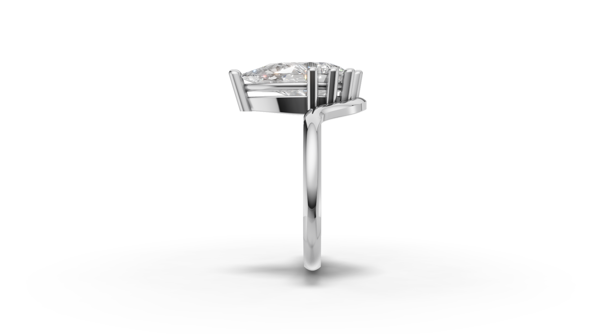 The band is gracefully curved, creating a modern silhouette that complements the classic beauty of the stone. Perfect for the bride who values both tradition and innovation!
