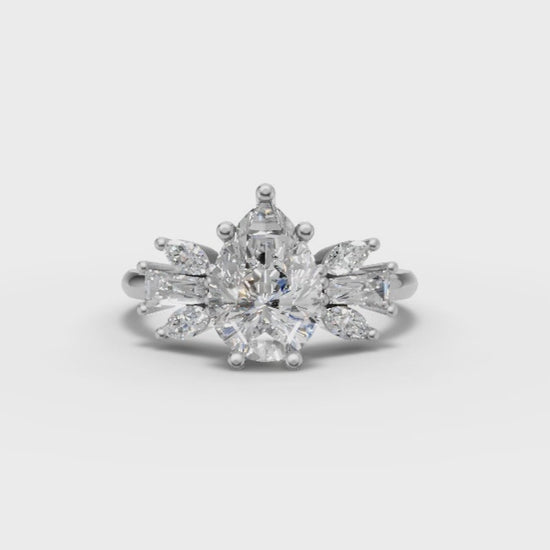 1.80 Diamond Equivalent Weight pear moissanite center stone